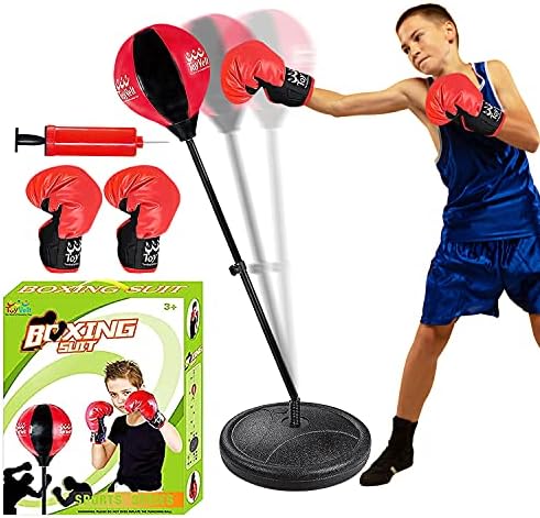 All Your Little Boxer Needs In One Box! The weighted stand with the elastic spring can be adjusted to 80 to 110 cm (30″ – 43″) depending on your kid’s needs. The stitched punching bag can be inflated in no time, while the quality-made boxing gloves are sturdy enough to withstand wear and tear in the hands of little boxers. Key Product Features
